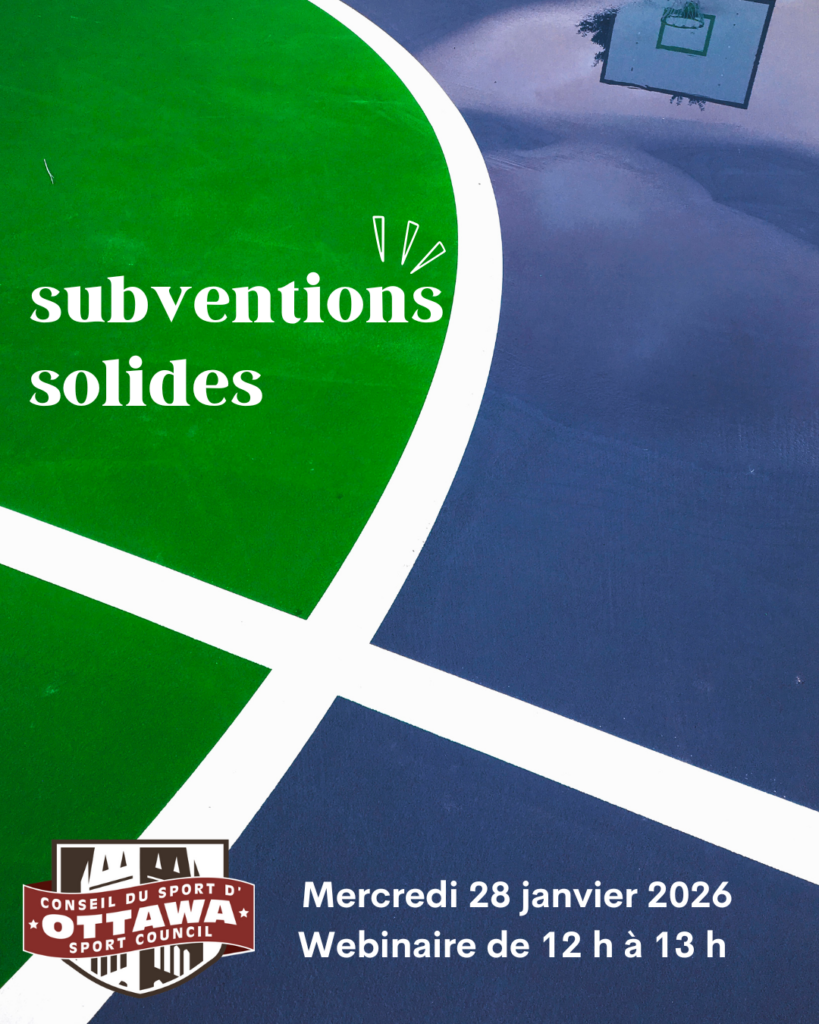 Réservez la date ! Le Conseil du sport d'Ottawa organise un webinaire d'une heure sur la préparation de demandes de subvention solides afin de vous aider à bien démarrer votre processus de demande de subvention pour 2026. Le Conseil des sports d'Ottawa continue de défendre, d'éduquer et de mettre en relation le secteur du sport communautaire avec diverses possibilités de financement tout au long de l'année grâce à son bulletin d'information et à ses réseaux sociaux.
