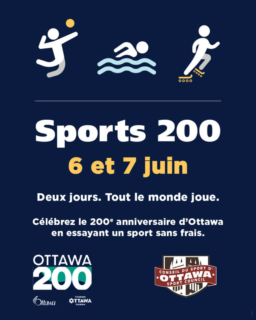 Le Conseil du sport d’Ottawa, en partenariat avec les Services des loisirs, de la culture et des installations de la Ville d’Ottawa, Ottawa 200 et Tourisme Ottawa lancent une vaste initiative autour de la ville pour encourager les résidents à participer à une multitude d’activités sportives gratuites la fin de semaine du 6 et 7 juin.